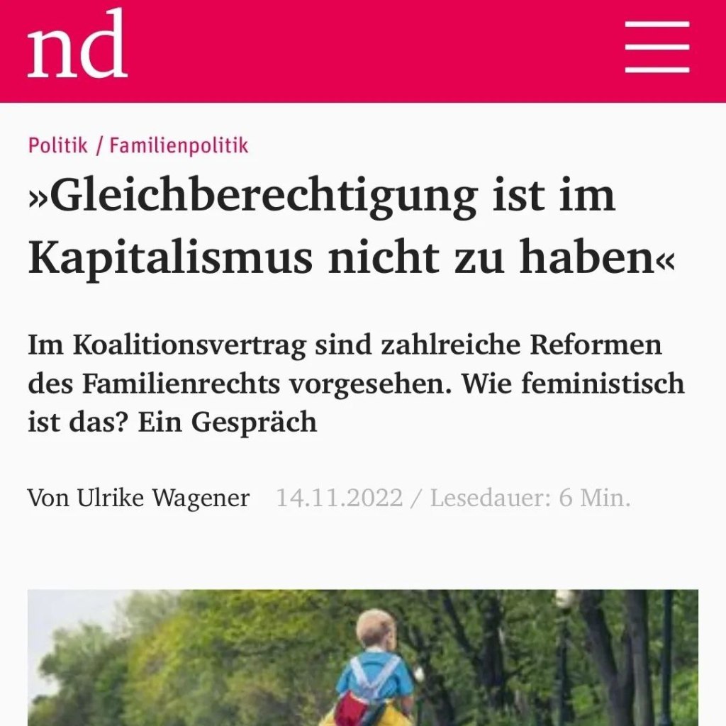 Im Koalitionsvertrag sind zahlreiche Reformen des Familienrechts vorgesehen. Wie feministisch ist das? Ein Gespräch zwischen uns und der nd-Journalistin Ulrike Wagener.