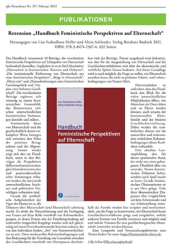 Lilly Schön bespricht im efas-Newsletter vom Februar 2022 das Handbuch.